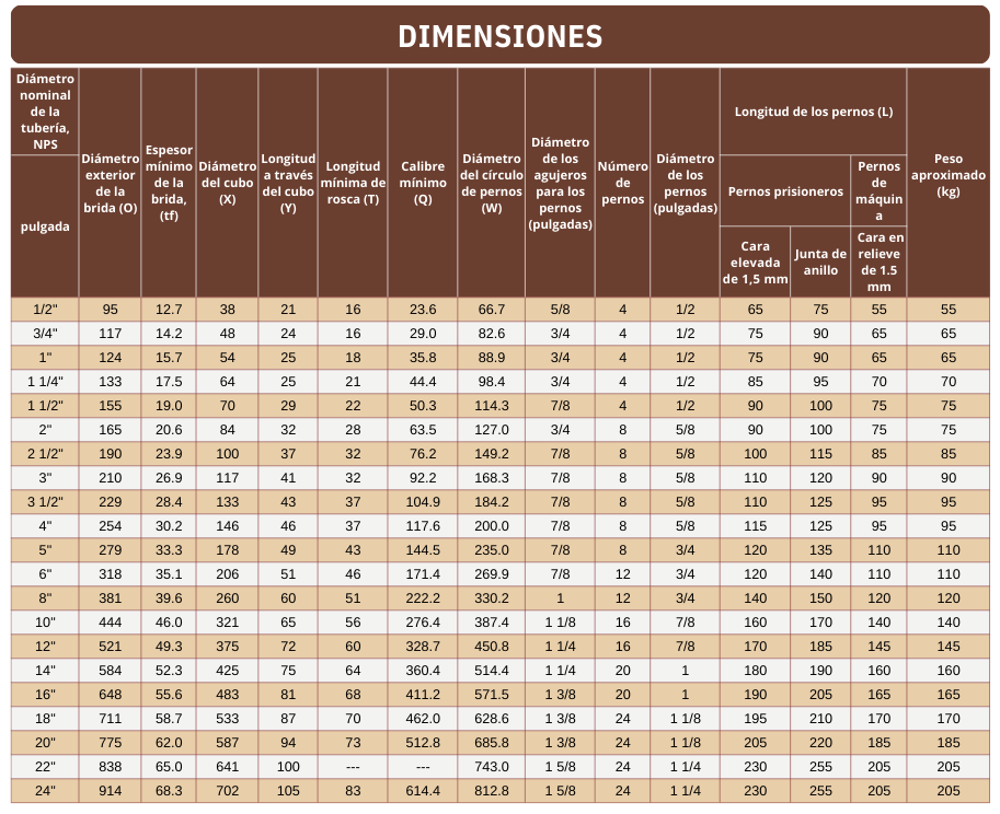 Brida Raised Face (RF) ANSI/ASME B16.5
