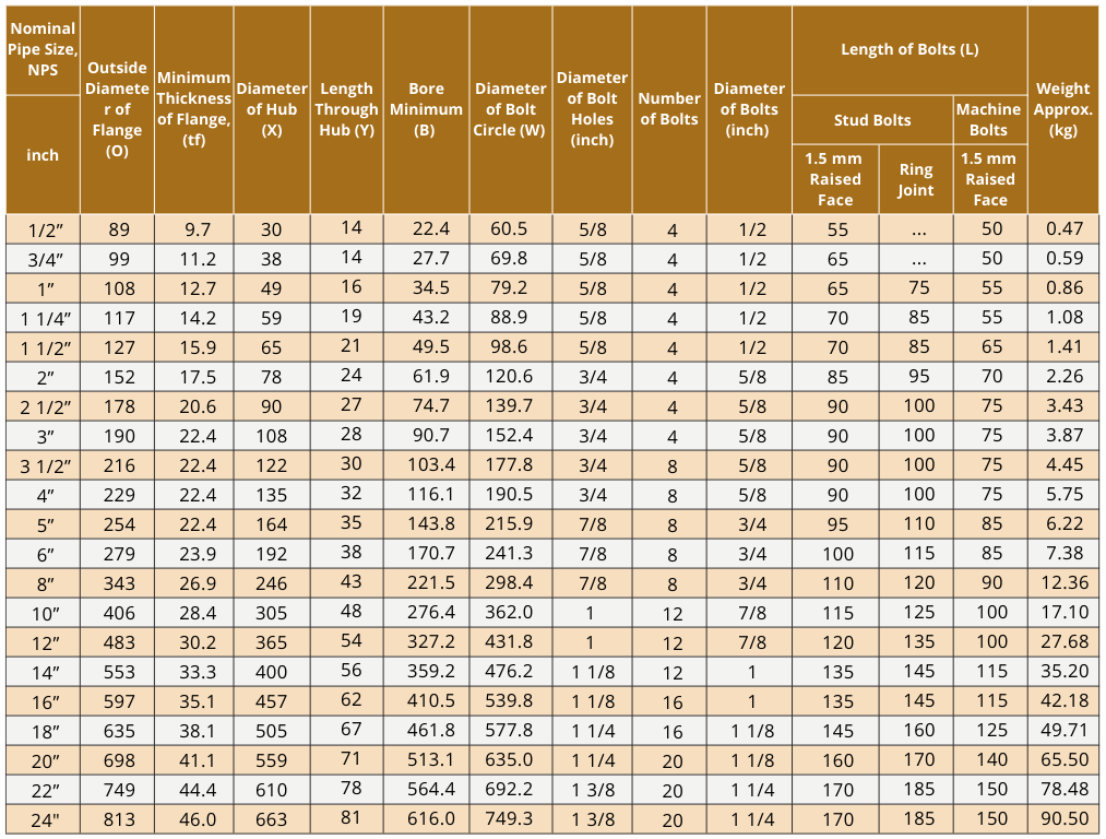 Brida Raised Face (RF) ANSI/ASME B16.5