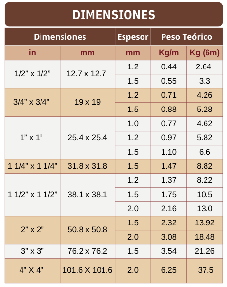 TUBO CUADRADO 1.5 mm EN ACERO INOXIDABLE