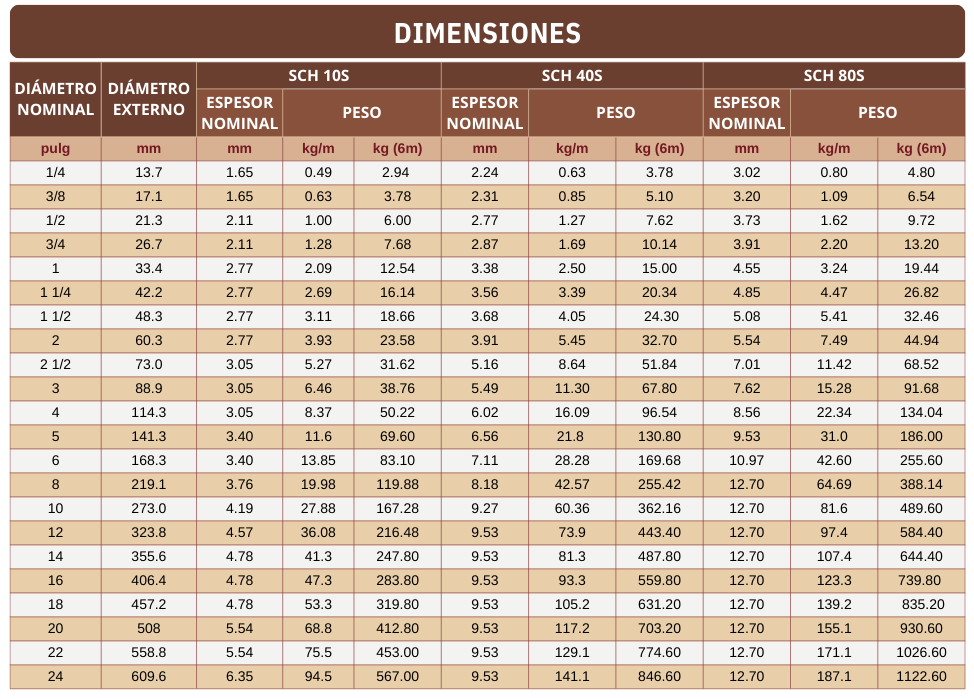 TUBO SCH80 S/ COSTURA EN ACERO INOXIDABLE